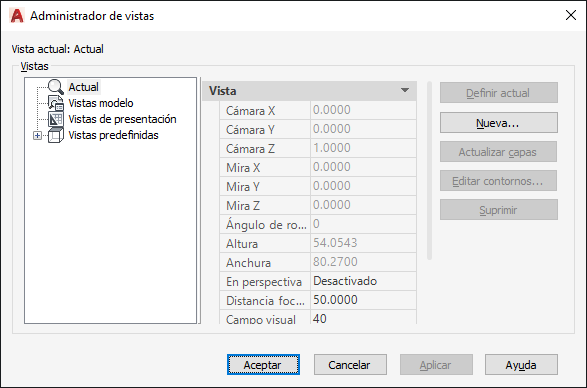 Únicamente para las vistas modelo y actual, precisa si la vista en perspectiva se encuentra activada.