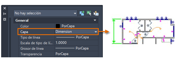 Puede definir algunas de las propiedades de un objeto por capa (PORCAPA) o especificando la propiedad de manera explícita, independientemente de su capa.