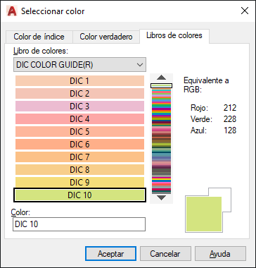 Especifica el libro de colores que se va a utilizar al seleccionar colores.