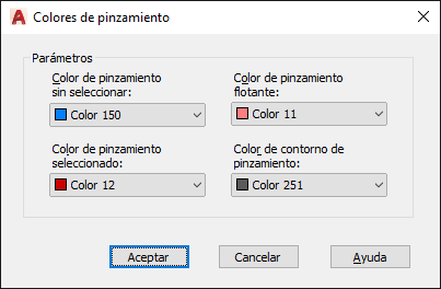 OPCIONES (comando) Buscar: ficha Selección > Colores de pinzamiento