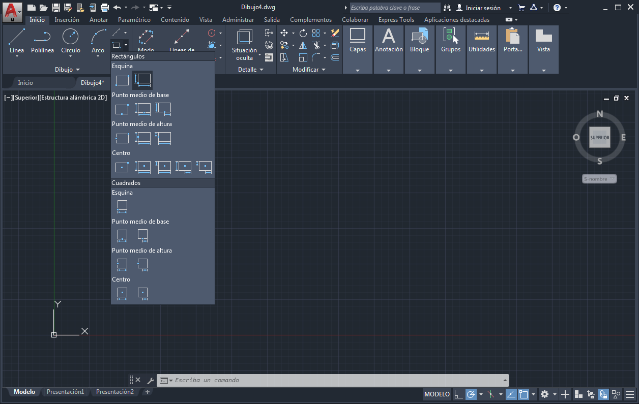 Los comandos de creación de rectángulo que se accedían mediante el cuadro de diálogo Rectángulos están ahora disponibles directamente desde la cinta de opciones.