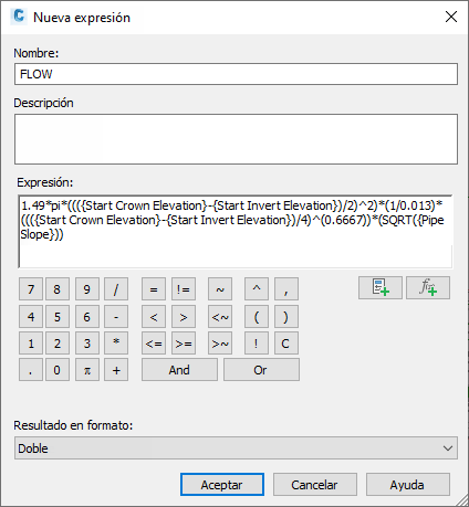 Se pueden crear expresiones personalizadas para determinar el caudal en tuberías circulares completas.