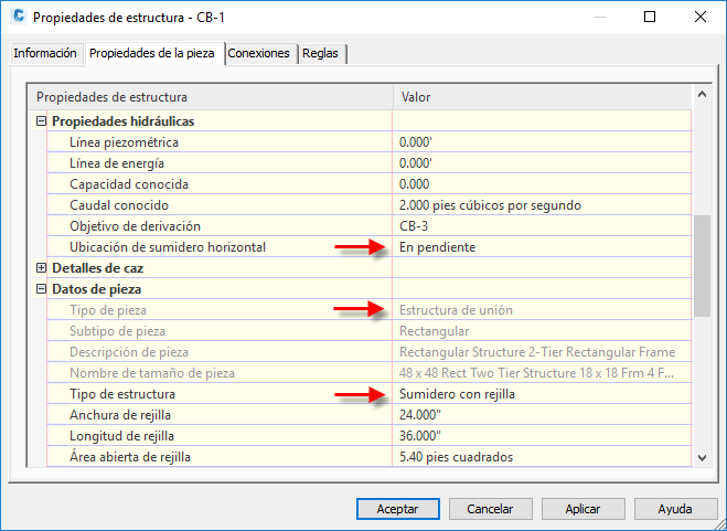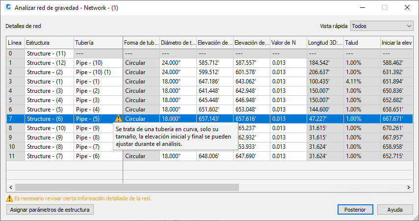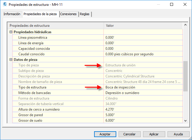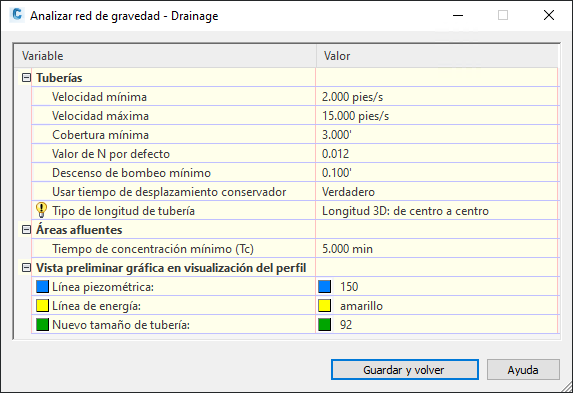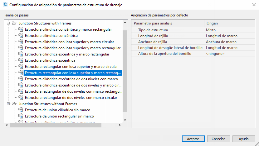 Para obtener más información, consulte Procedimiento para asignar parámetros de estructura de drenaje para el análisis de red de gravedad.
