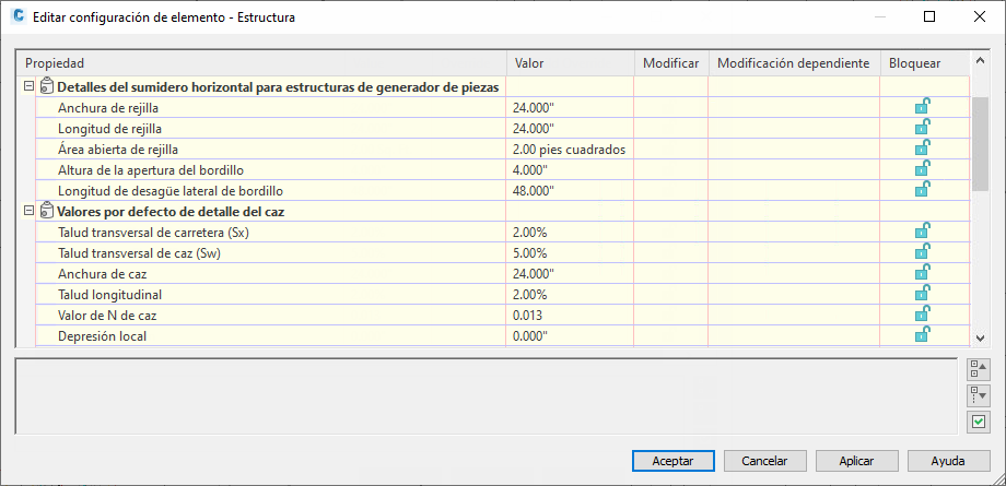 Se puede especificar la configuración por defecto de las estructuras en el cuadro de diálogo Editar configuración de elemento - Estructura.