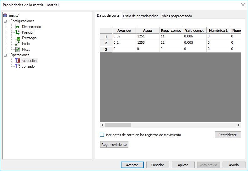 Val. comp. es simplemente el radio del hilo más el desfase del hilo. Los Val. comp. también deberían encontrarse en la documentación de la máquina.