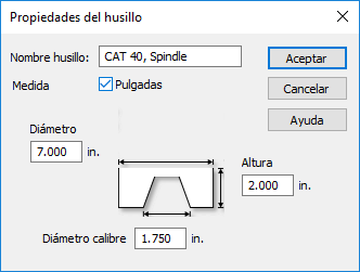Medida — Las unidades en las que se miden las dimensiones del husillo. Seleccione Pulgadas para utilizar pulgadas o desactive la casilla para milímetros.