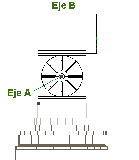 Cabezal inclinado B y A — Rota en torno a Y con una mesa y después en torno a X en el cabezal.
