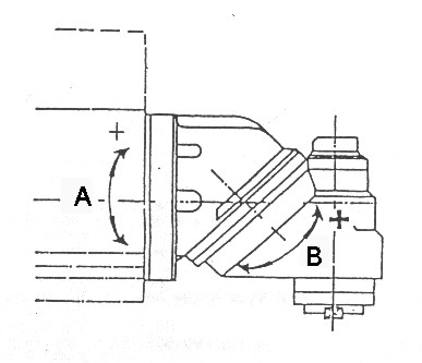 Cabezal inclinado B y A con ángulo de 45 grados — Rota en torno a Y y después en torno a X con un cabezal inclinado 45 grados. También se conoce el cabezal con el nombre de cabezal Huron.