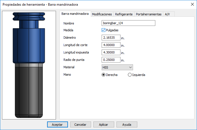 Material — Indica de qué está hecha la herramienta. Esta información es relevante a la hora de calcular los avances y las velocidades.