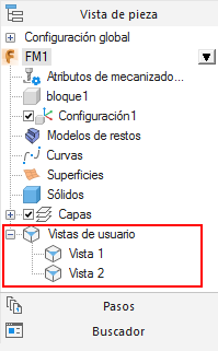 Haga doble clic en una vista de usuario del panel Vista de pieza para utilizar esta vista en la ventana gráfica.