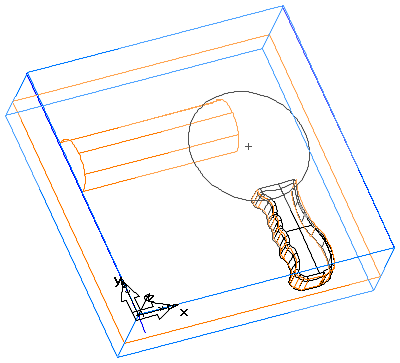 Este ejemplo de secador utiliza una carcasa esférica para el motor. Así que si el diseño necesitase una esfera de diámetro de 2,25 pulgadas, se podría crear dicha superficie dibujando el diámetro del círculo de 2,25 pulgadas a una profundidad en el bloque. Ahora utilice dicho círculo para construir una esfera, que podría recortarse con la superficie de partición reglada.