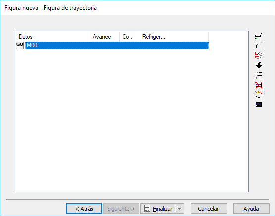 Nota: Si desea crear trayectorias con movimientos introducidos manualmente o procedentes de curvas, es necesario seleccionar las herramientas y los valores de avances y velocidades manualmente.