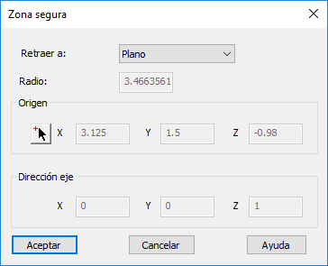 El cuadro de diálogo de Zona segura controla las aproximaciones, movimientos de carga y retracciones de las operaciones de 5 ejes simultáneos.