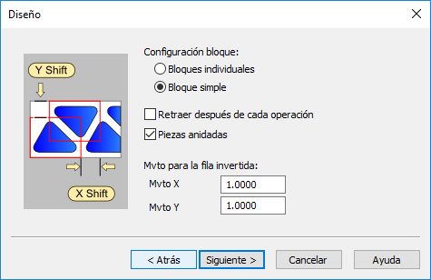Es posible configurar las siguientes opciones de anidación en el cuadro de diálogo de Diseño: