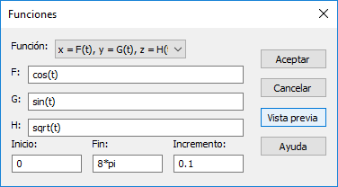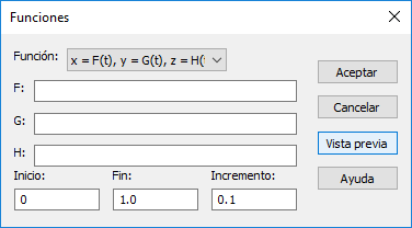 En la lista de Función, seleccione x = F(t), y = G(t), z = H(t).