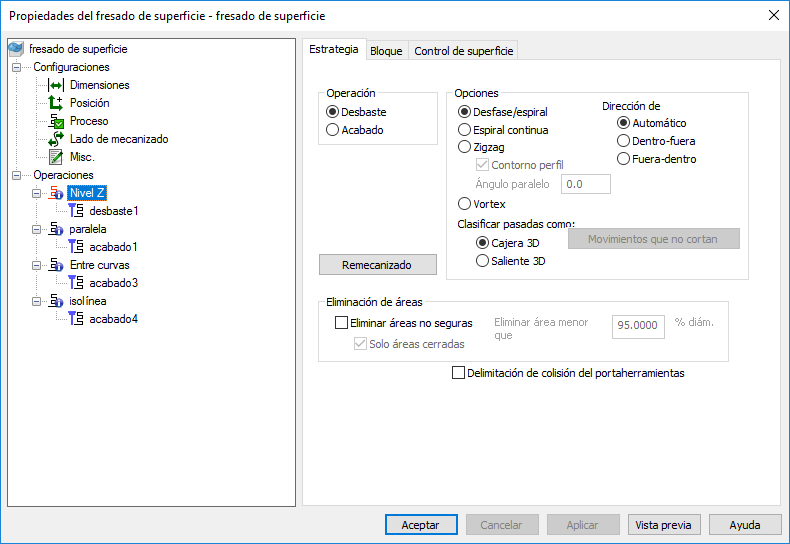 Ejemplo de eliminación de áreas de desbaste de nivel Z: