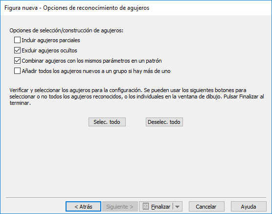 - Para conservar todos los agujeros reconocidos, haga clic en Selec. todo y pulse Finalizar.