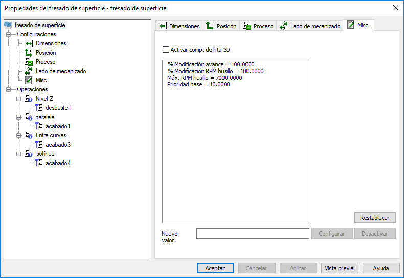 Activar comp. de hta 3D — Consulte la pestaña de Estrategia en 2,5D para más información acerca de la compensación de herramienta.
