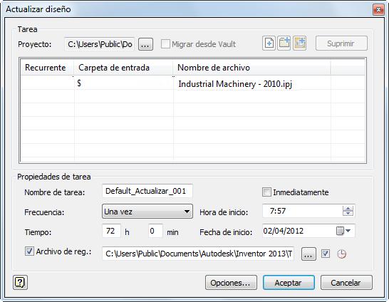 - Autodesk Inventor debe estar autorizado en el sistema antes de ejecutar el programador de tareas.