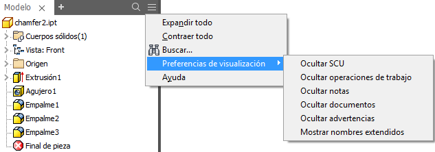 - En un archivo de presentación y ensamblaje, se puede seleccionar la nueva opción de menú de navegador, Editar valores en el navegador, para habilitar o deshabilitar el cuadro de edición del navegador (no disponible en Inventor LT).