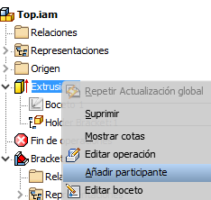 Ahora puede seleccionar un cordón de soldadura de un subensamblaje para añadirlo como participante en una operación de ensamblaje en el ensamblaje superior, cuando el cordón de soldadura se añade después de crear una operación de ensamblaje.