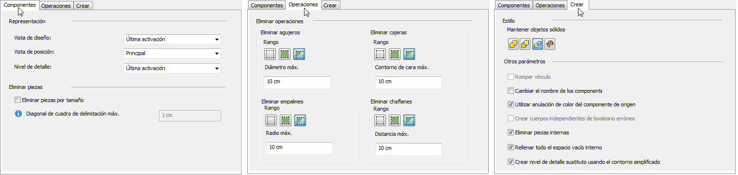 La tarea de contorno simplificado incluye ahora la nueva funcionalidad de contorno simplificado introducida en 2018. Al hacer clic en Opciones, el cuadro de diálogo Opciones de contorno simplificado ahora aparece con tres fichas.