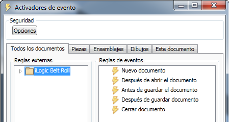 Para obtener más información acerca de los activadores de eventos, consulte Procedimiento para trabajar con activadores de evento en iLogic.