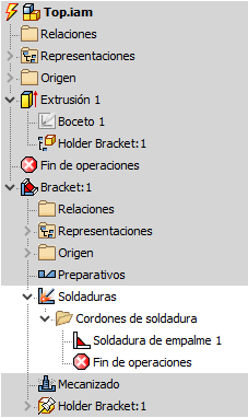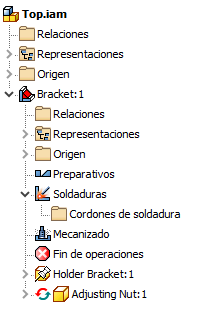 | 1. Abra un ensamblaje con un subensamblaje de conjunto soldado sin cordones de soldadura. | 2. Cree una operación en el ensamblaje de nivel superior. | 3. Active el subensamblaje y cree un cordón de soldadura. | 4. Haga clic con el botón derecho del ratón en la operación que se crea en el ensamblaje de nivel superior y seleccione Añadir participante. | 5. Expanda el nodo de soldadura en el subensamblaje y seleccione la carpeta Cordones en el navegador o seleccione el cordón de soldadura en la ventana gráfica para añadir el cordón de soldadura como un participante en el ensamblaje de nivel superior (NUEVO). | |