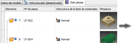 La columna Miniatura se debe incluir como una columna en el cuadro de diálogo Lista de materiales para que las miniaturas se exporten a un archivo externo.
