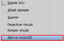 Después de insertar un archivo DWG de AutoCAD en el ensamblaje, los elementos de menú contextual siguientes estarán disponibles en el menú contextual del nodo de navegador del archivo DWG.
