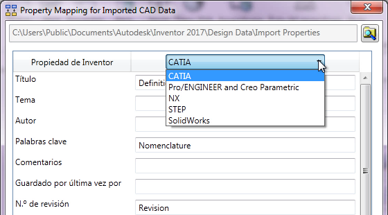 Para obtener más información, consulte Asignación de propiedades de datos de CAD importados a propiedades de Inventor estándar.