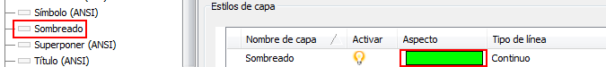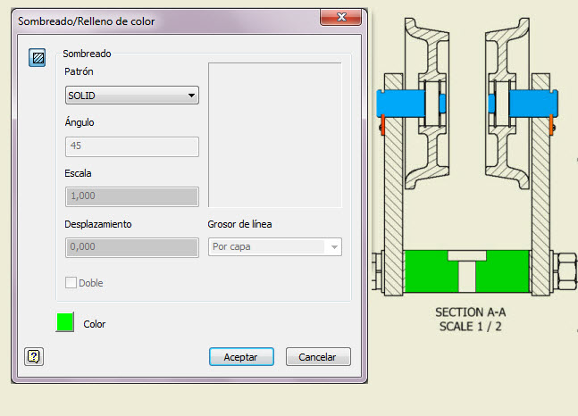 También puede anular manualmente el patrón de sombreado por defecto o el color por defecto en el cuadro de diálogo Sombreado/Relleno de color.