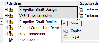 Ahora puede abrir el ensamblaje de nivel superior de una referencia asociativa o una pieza virtual a partir de una lista de piezas o una lista de materiales. Haga clic con el botón derecho en una fila de la lista de materiales o de la lista de piezas que contenga una referencia asociativa o piezas virtuales y seleccione Abrir. Se abrirá el ensamblaje de nivel superior que contiene la referencia a la referencia de AnyCAD asociativa o pieza virtual.