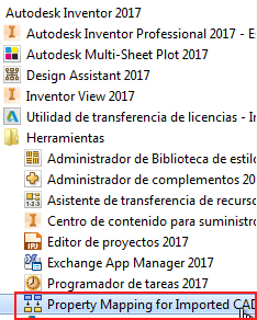 Acceda a la nueva herramienta Asignación de propiedades datos de CAD importados desde: