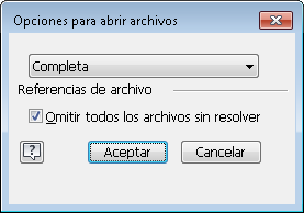 - En el cuadro de diálogo Opciones para abrir archivos..., el botón combinado Completo o Aplazar reemplaza las casillas de verificación Aplazar actualizaciones y Apertura rápida.