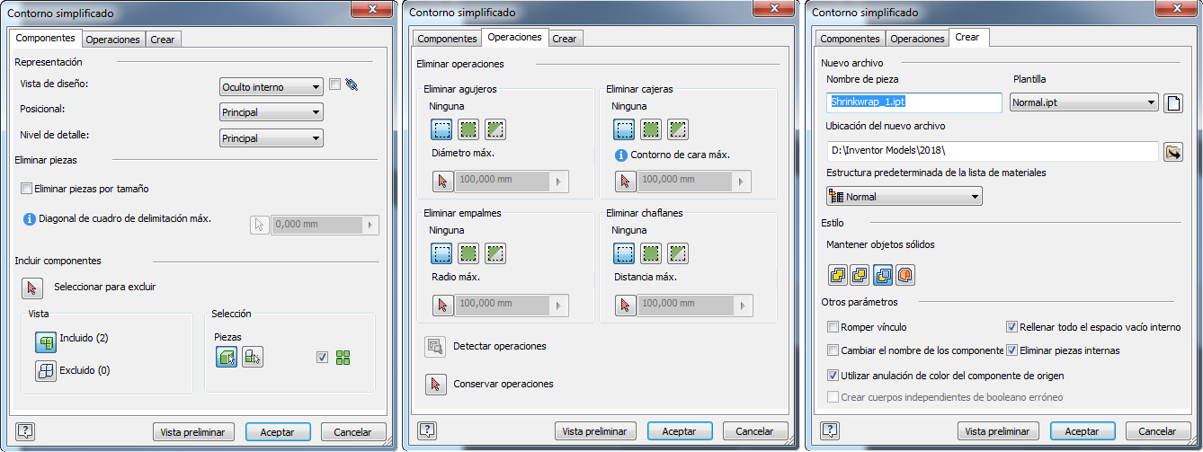 Para obtener más información sobre el contorno simplificado, consulte Ensamblajes de contorno simplificado y los temas secundarios correspondientes.