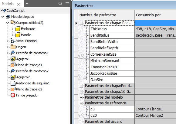 Consejo: En una pieza con varios cuerpos, utilice Consumido por con la opción de filtro Por operación para identificar las dependencias.