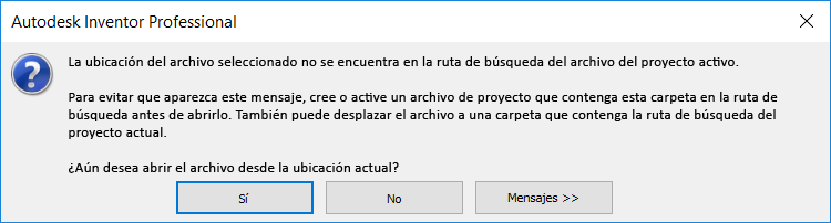 Los mensajes de gestión de errores que se muestran cuando intenta abrir un archivo que no se encuentra en la ruta de búsqueda del proyecto activo se han actualizado para proporcionar una explicación más útil sobre cómo resolver el problema:
