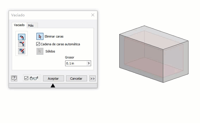 - (Opcional) Para cambiar el grosor de una cara de vaciado determinada, haga clic en Más
