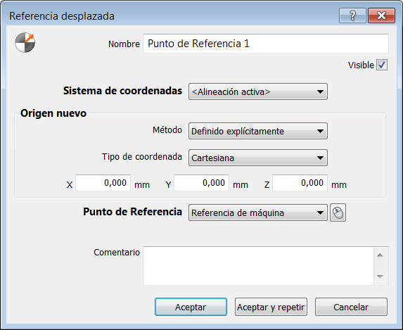 - Para mostrar el punto de referencia en la vista CAD, seleccionar la casilla Visible.
