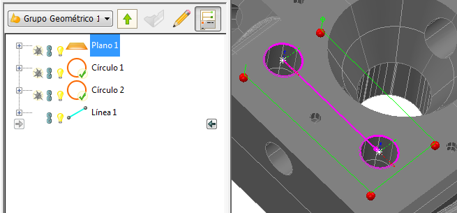 Haga clic en la pestaña de Inicio > panel de Trayectoria de la sonda > flecha de Visibilidad > Visualizar la trayectoria de sonda seleccionada para visualizar la trayectoria de la sonda del elemento seleccionado en el árbol de secuencia. Por ejemplo: