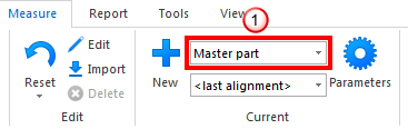 muestra la medición seleccionada actualmente; Pieza maestra indica los errores correspondientes a la base de datos de la sonda del dispositivo de medición.