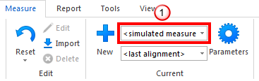 muestra la medición seleccionada actualmente; <medición simulada> indica los errores correspondientes a la base de datos de la sonda de simulación.