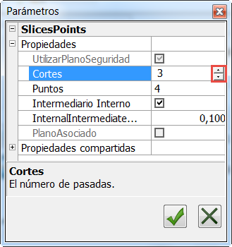 Cada método de sondeo cuenta con varios parámetros que determinan el número de puntos sondeados necesarios para medir un elemento, el número de pasadas de la trayectoria de la sonda, etc. Utilice el cuadro de diálogo de Parámetros para ver o cambiar los valores predeterminados del método seleccionado.