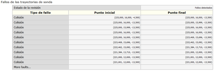 Se pueden notificar hasta diez fallos por elemento. Cuando se registran más de 10 fallos, la pestaña indica Más resultados, pero no proporciona más detalles.