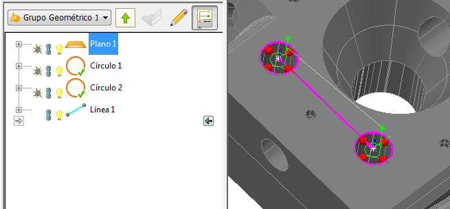 Para visualizar la trayectoria de la sonda de todos los elementos visibles en la vista CAD