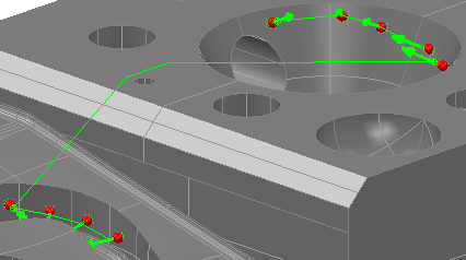 Utilice el elemento de Trayectoria de unión sin colisiones para crear un movimiento intermedio de la sonda entre figuras que automáticamente evite todo contacto con la pieza.
