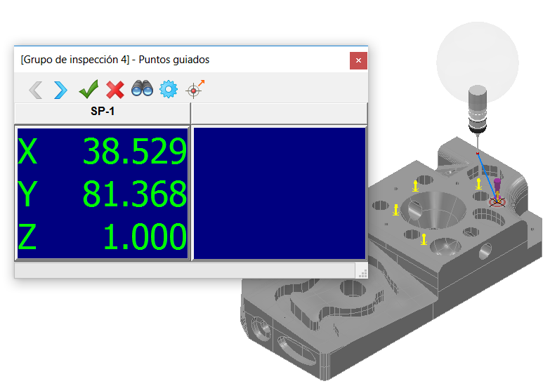 para pasar al siguiente punto guiado del grupo. PowerInspect espera a que sondee el punto.