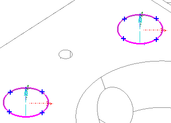 Las posiciones de los puntos de contacto teóricos se representan como cruces en todas las figuras mostradas en la vista CAD. Por ejemplo: