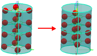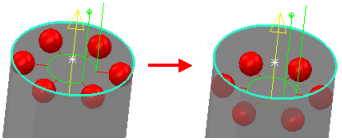 Cambiar la profundidad de la sonda de un cono o cilindro modifica la profundidad de los puntos superior e inferior. En este ejemplo se ve el resultado de cambiar la profundidad de la sonda de 1 a 3 mm en un cilindro: